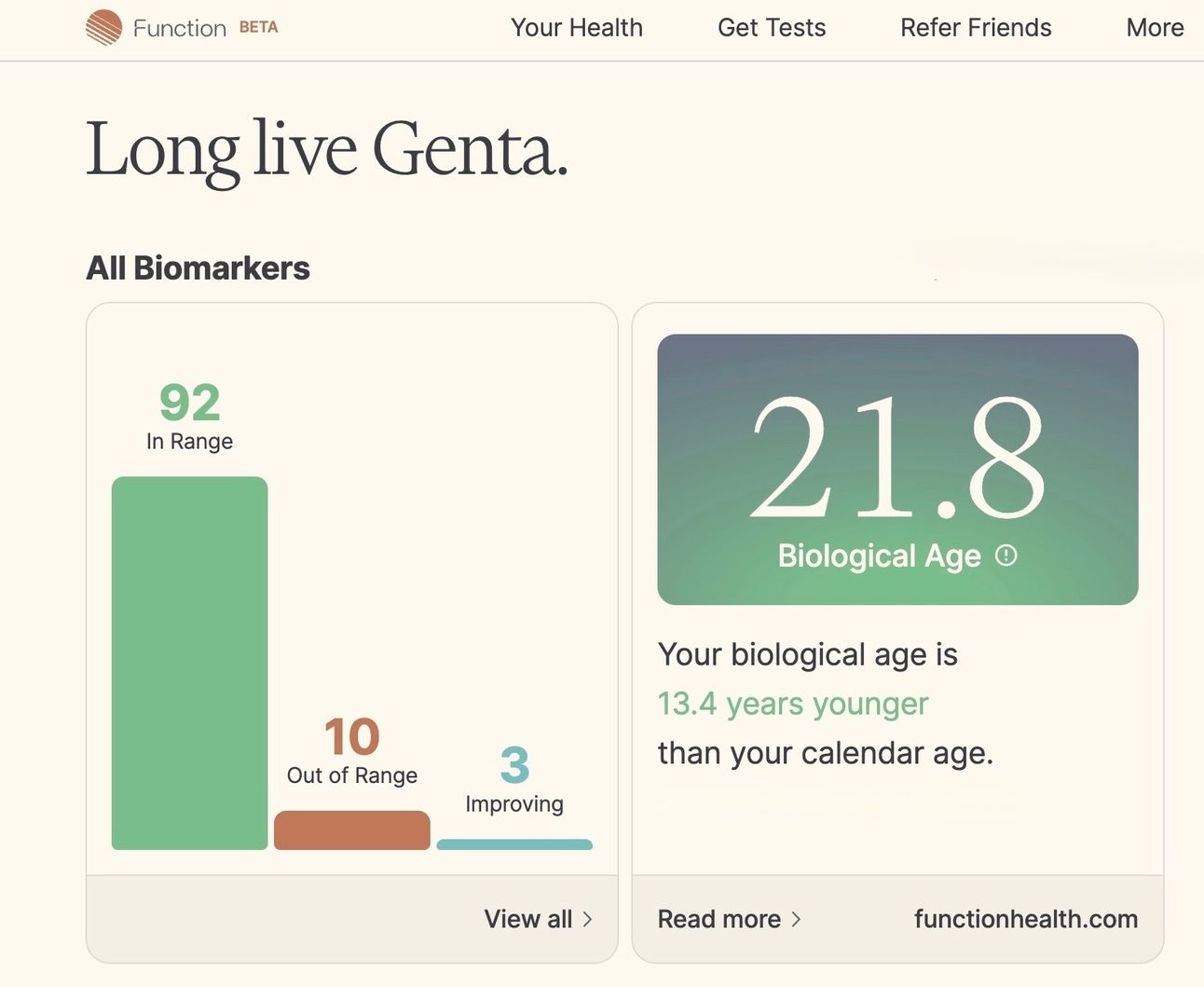 I was there because I’d just joined Function Health—a platform that runs over 100 biomarker tests and actually shows you what’s going on inside your body, instead of patting you on the head, saying “you’re fine,” and scheduling your next appointment for 2026.